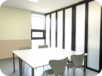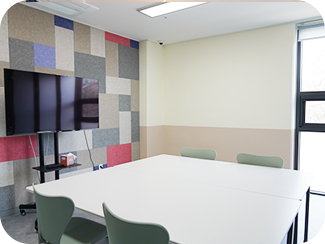 - 사용용도 : 모임, 회의 등 - 사용가능 물품 : TV, 화이트보드 - 수용인원 : 미팅룸 1 (6명) / 미팅룸 2 (6명) / 미팅룸 통합 (12명) * 미팅룸은 1,2로 분리 및 통합이 가능 |