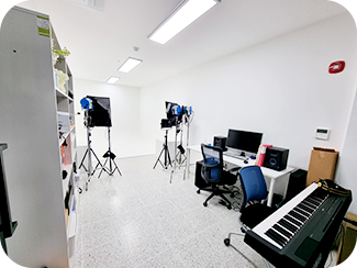 - 사용용도 : 촬영 - 사용가능 물품 : PC, 카메라, 노트북, 크로마키 스크린, 프롬프터 등(외부반출 금지) - 예약문의 : 032)710-0501 - 스튜디오실 사용 안내 : ⚪ 촬영 스크린 사용 시 오염과 훼손에 주의하여 주세요. ⚪ PC 및 노트북 사용 시 비밀번호는 관리자에게 문의하여 주세요. ⚪ 카메라 및 조명 설치와 관련하여 기본 사용방법은 요청 시 안내해드려요. ⚪ 사용하신 장비는 원래의 위치로 정리해 주세요. ⚪ 음식물 반입을 금지합니다. |