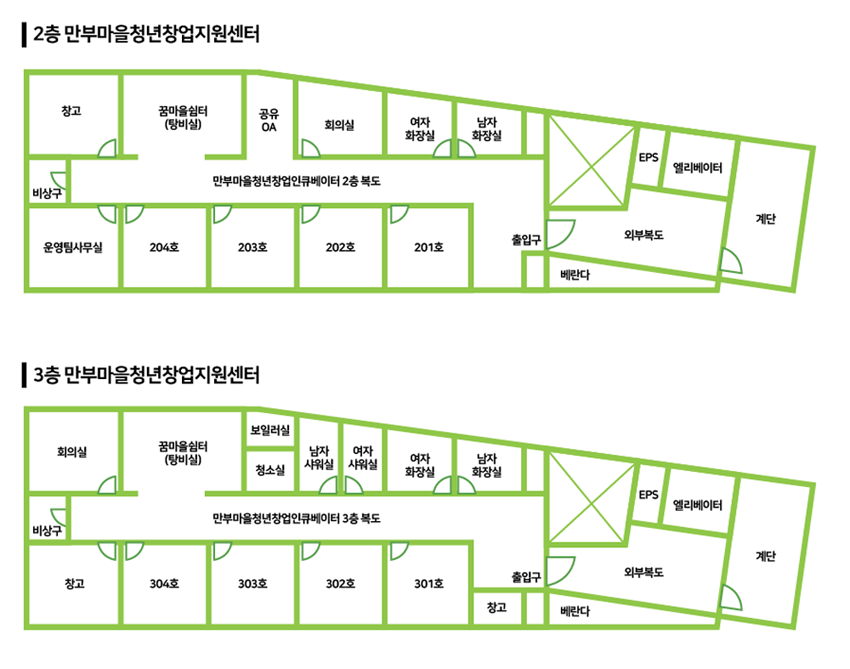 - 만부마을 청년창업 인큐베이터 각 층 입주기업